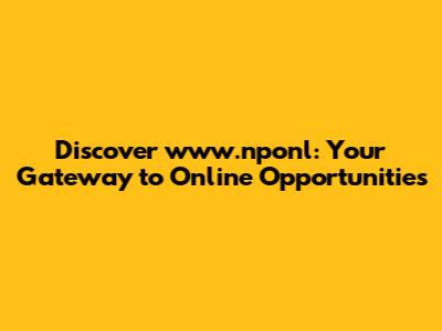 Discover Www.nponl: Your Gateway To Online Opportunities