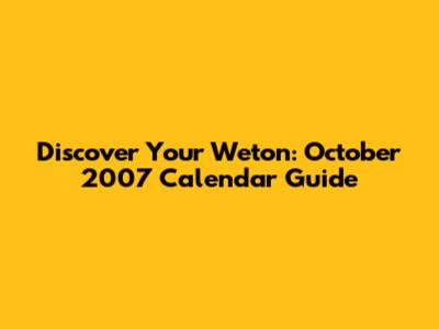 Discover Your Weton: October 2007 Calendar Guide