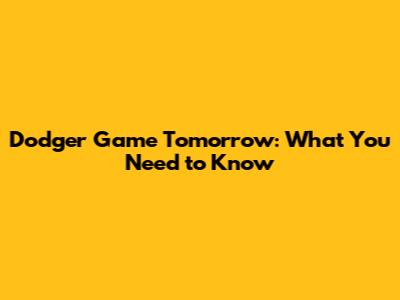 Dodger Game Tomorrow: What You Need To Know