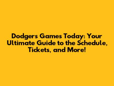 Dodgers Games Today: Schedule, Tickets & More!