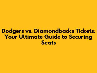 Dodgers Vs. Diamondbacks: Your Ultimate Ticket Guide