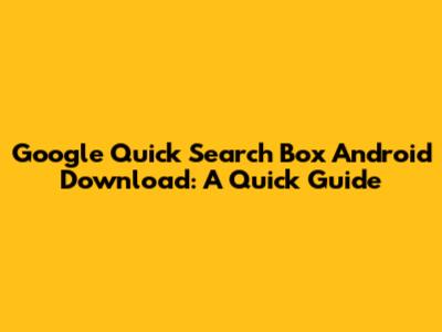 Download Google Quick Search Box For Android: A Quick Guide