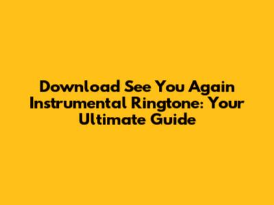 So there you have it, guys! Everything you need to know about downloading and setting up your very own 'See You Again' instrumental ringtone. Whether you're an avid fan of the song, looking for a unique ringtone that reflects your musical taste, or just want something a little different, this guide has got you covered. Go out there, find your perfect ringtone, and enjoy the music! Remember, with a little bit of searching and a dash of creativity, you can have a ringtone that's as awesome as you are. Happy ringing!