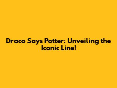 Draco Says Potter: Unveiling The Iconic Line!