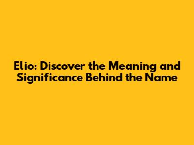 Elio: Discover The Meaning And Significance Behind The Name