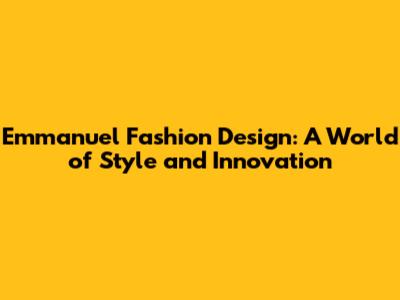 Emmanuel Fashion Design: Unveiling Style And Innovation
