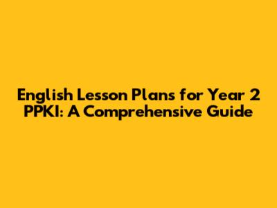 English Lesson Plans For Year 2 PPKI: A Comprehensive Guide
