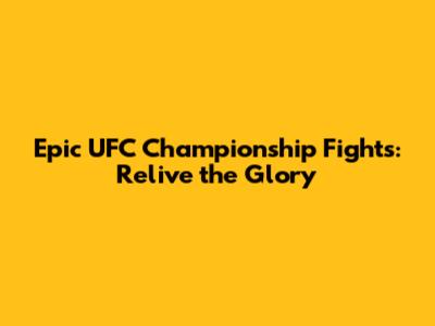 Epic UFC Championship Fights: Relive The Glory