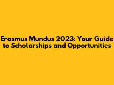 Decoding the Erasmus Mundus 2023 Opening Date: What You Need to Know