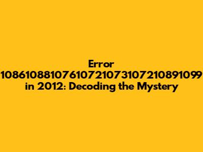 Error 10861088107610721073107210891099 In 2012: What Is It?