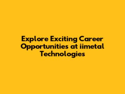 Explore Exciting Career Opportunities At Iimetal Technologies