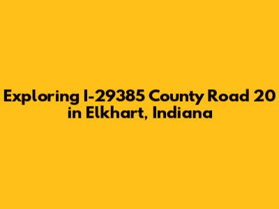Hey everyone! Let's dive into something specific today: I-29385 County Road 20, located right here in Elkhart, Indiana. It's a key piece of the local landscape, and understanding it can be super useful, whether you're new to the area, planning a trip, or just curious about what makes Elkhart tick. We'll break down everything you need to know, from its location and importance to some cool nearby spots. So, grab a coffee, and let's get started!