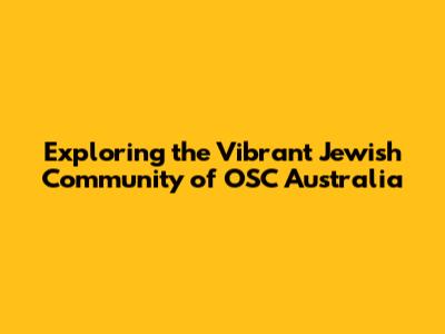Exploring The Vibrant Jewish Community Of OSC Australia