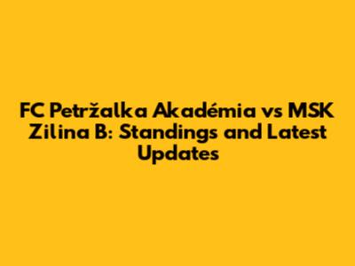 FC Petržalka Vs Žilina B: Standings And Latest Updates