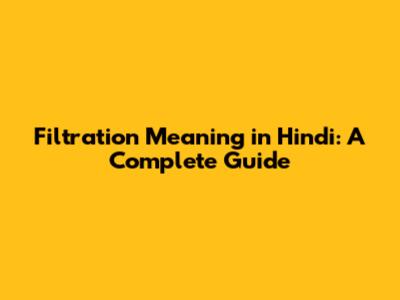 Filtration Meaning In Hindi: A Complete Guide