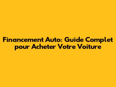 Financement Auto: Guide Complet Pour Acheter Votre Voiture