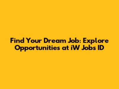 Find Your Dream Job: Explore Opportunities At IW Jobs ID