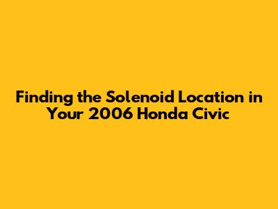 Hey there, car enthusiasts! So, you're trying to figure out the solenoid location in your trusty 2006 Honda Civic, huh? No worries, you've come to the right place. Solenoids are kinda like the unsung heroes of your car's engine, controlling various functions that keep things running smoothly. This guide will walk you through where to find these essential components. We'll break down the different solenoids you might need to locate and what they do. Let's dive in and get those solenoids sorted, shall we?