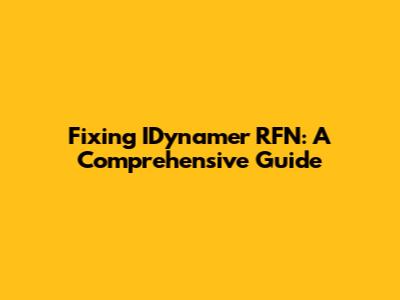 Fixing IDynamer RFN: A Comprehensive Guide