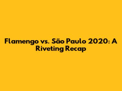 Flamengo Vs. São Paulo 2020: A Riveting Recap