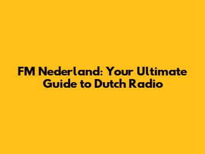 Hey guys! Ever wondered about the FM landscape in the Netherlands? Well, buckle up because we're diving deep into FM Nederland! This guide is your one-stop shop for everything you need to know about Dutch radio frequencies, stations, and how to tune in. Whether you're a local or just visiting, understanding how FM radio works in the Netherlands is key to enjoying all the awesome music, news, and entertainment available. We'll explore the history, the current stations, and even some tips and tricks to get the best reception. So, grab your headphones, and let's get started on this radio adventure!