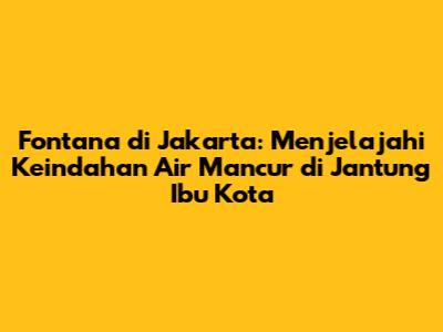 Guys, siapa sih yang nggak suka sama suasana yang adem dan menenangkan? Apalagi kalau lagi di tengah hiruk pikuk Jakarta, butuh banget tempat buat refreshing sejenak. Nah, salah satu cara unik buat dapetin suasana itu adalah dengan mengunjungi fontana atau air mancur yang ada di Jakarta. Percaya deh, di balik gemericik airnya, ada banyak cerita dan keindahan yang sayang banget buat dilewatkan. Artikel ini bakal ngajak kalian diving lebih dalam tentang Fontana di Jakarta, mulai dari sejarahnya yang unik sampai pesona visualnya yang bikin betah. Siap-siap ya, kita bakal ngobrolin air mancur yang nggak cuma sekadar air mancur biasa, tapi punya makna dan nilai tersendiri di kota metropolitan ini. Jadi, kalau kalian lagi cari inspirasi buat weekend getaway atau sekadar pengen tahu lebih banyak tentang sudut-sudut kota Jakarta yang mungkin terlewatkan, stay tuned! Kita akan kupas tuntas soal fontana ini, dari yang legendaris sampai yang kekinian. Siapa tahu setelah baca ini, kalian jadi pengen langsung hunting foto di depan salah satu air mancur ikonik Jakarta. Seru banget kan?