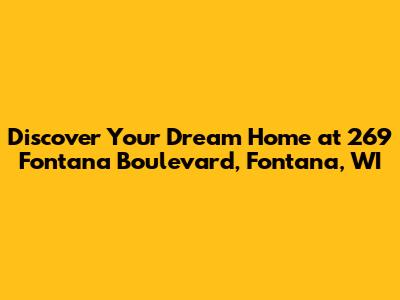Hey everyone! Are you guys on the hunt for a truly special place to call home? Well, get ready, because we've got an incredible property that might just be your perfect match. Located at 269 Fontana Boulevard in beautiful Fontana, Wisconsin (53125), this isn't just a house; it's a lifestyle waiting to happen. Imagine waking up every morning in a charming community, close to all the amazing things that make Wisconsin living so fantastic. We're talking about gorgeous natural scenery, friendly neighbors, and a pace of life that lets you truly relax and enjoy yourself. This property is more than just an address; it's an opportunity to create lasting memories and build the future you've been dreaming of. Whether you're a growing family, a couple looking for more space, or someone seeking a peaceful retreat, 269 Fontana Boulevard offers a unique blend of comfort, style, and convenience that's hard to find anywhere else. Stick around as we dive deep into what makes this Fontana gem so incredibly special, and why you should seriously consider making it your next big move. Get ready to fall in love, guys – this one's a beauty!