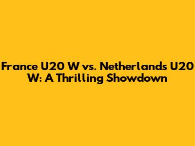 France U20 W Vs. Netherlands U20 W: A Thrilling Showdown
