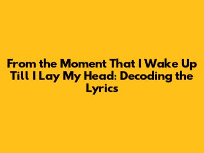 Hey guys! Ever find yourself humming a tune and suddenly wondering, “What exactly am I singing about?” Today, we're diving deep into the lyrics of a song that resonates with so many of us: "From the Moment That I Wake Up Till I Lay My Head." This phrase, often part of a larger song, captures the essence of daily life, the grind, the joys, and the struggles we all experience from sunrise to sunset. Let's break it down and see what makes it so relatable.