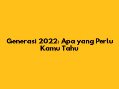 Generasi 2022: Apa Yang Perlu Kamu Tahu