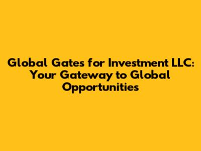Global Gates For Investment LLC: Your Gateway To Global Opportunities