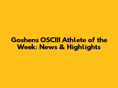 Goshen's OSCIII Athlete Of The Week: News & Highlights