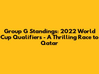 Hey guys! Let's dive deep into the exciting world of Group G standings from the 2022 World Cup Qualifiers. This group was a nail-biter, packed with surprises, incredible goals, and of course, the drama that we football fanatics live for. As you know, the road to the World Cup is never easy, and Group G was no exception. We'll be breaking down the teams, their performances, and how they battled it out for a coveted spot in Qatar. Get ready for a recap of the 2022 World Cup Qualifiers group stage matches, and find out which teams showed the most potential!