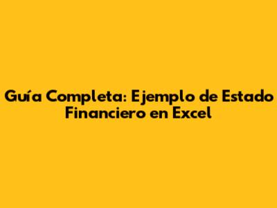 Guía Completa: Ejemplo De Estado Financiero En Excel