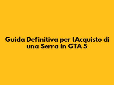 Passaggi Pratici per l'Acquisto della Serra in GTA 5