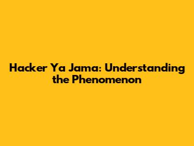 Hacker Ya Jama: Understanding The Phenomenon
