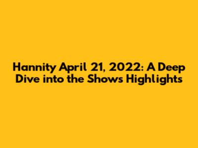 Hey everyone! Let's rewind the clock and dive into the happenings of Hannity on April 21, 2022. This show, like any episode, was packed with discussions, debates, and Sean Hannity's signature takes on the day's biggest stories. We're going to break down the key segments, the guests who graced the screen, and the overall vibe of the broadcast. So, grab your popcorn, settle in, and let's dissect this episode together! The main topics usually revolve around political analysis, interviews with prominent figures, and commentary on current events, so let's get started. Understanding the context of this show helps provide valuable insights into the political landscape. By examining the show's structure, guests, and arguments, viewers can gain a better understanding of the perspectives presented. This breakdown offers a glimpse into the show's approach and how it aims to engage its audience, and these insights are useful for critical analysis and informed discussion. Let's dig in!