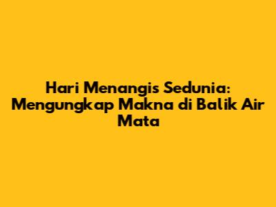 Guys, pernah nggak sih kalian ngerasa pengen nangis aja gitu tanpa sebab yang jelas? Atau mungkin kalian lagi sedih banget sampai air mata nggak bisa berhenti ngalir? Nah, ada lho hari khusus buat kita semua merayakan atau setidaknya mengakui momen-momen kayak gini. Yap, Hari Menangis Sedunia itu nyata, dan ini bukan cuma soal meratapi nasib, lho. Justru, ini adalah kesempatan buat kita untuk memahami lebih dalam tentang kekuatan dan manfaat di balik air mata kita. Seringkali, kita diajarkan untuk menahan tangis, dianggap lemah kalau kelihatan sedih. Padahal, menangis itu adalah respons alami tubuh kita, cara melepaskan stres, emosi negatif, bahkan bisa jadi sinyal buat orang lain kalau kita butuh dukungan. Di artikel ini, kita bakal kupas tuntas kenapa hari ini penting, apa aja sih manfaatnya nangis, dan gimana caranya kita bisa lebih terbuka dan sehat dalam mengekspresikan emosi. Jadi, siapin tisu kalian, karena kita akan menyelami dunia air mata dengan cara yang berbeda. Ini bukan cuma tentang kesedihan, tapi tentang ketahanan, empati, dan kesehatan mental kita secara keseluruhan. Yuk, kita mulai petualangan memahami diri sendiri lewat fenomena universal yang sering kita abaikan ini. Penting banget lho buat kita semua sadar akan hal ini, agar nggak ada lagi stigma negatif yang melekat pada tangisan. Mari kita jadikan momen ini sebagai pengingat bahwa merasakan emosi itu wajar, dan menangis adalah salah satu caranya. Kita akan bahas juga sejarah singkatnya, kenapa tanggal 4 April dipilih, dan bagaimana berbagai budaya memandang fenomena menangis ini. Lebih dari sekadar hari peringatan, Hari Menangis Sedunia ini adalah ajakan untuk lebih peduli pada diri sendiri dan orang-orang di sekitar kita. Karena di balik setiap tetes air mata, ada cerita, ada pelepasan, dan ada kekuatan yang menunggu untuk ditemukan. Jangan pernah ragu untuk mengekspresikan perasaanmu, guys. Itu adalah tanda keberanian, bukan kelemahan. Dan siapa tahu, dengan memahami Hari Menangis Sedunia ini, kita bisa jadi lebih kuat dan bijaksana dalam menjalani hidup. Mari kita sambut hari ini dengan hati terbuka, siap untuk belajar dan tumbuh bersama.