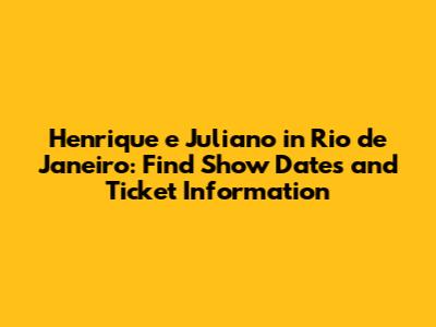 Disclaimer: This article is for informational purposes only. Please refer to the official Henrique e Juliano website and authorized ticketing platforms for the most accurate and up-to-date information.