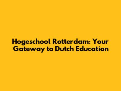 Hogeschool Rotterdam: Your Gateway To Dutch Education