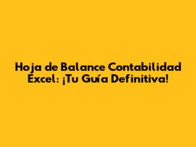 La Hoja de Balance en Excel: Tu Aliada Digital