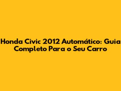 Honda Civic 2012 Automático: Guia Completo Para O Seu Carro