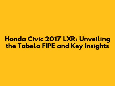 Hey car enthusiasts! Are you guys looking into the Honda Civic 2017 LXR? Awesome choice! It's a fantastic car, known for its reliability, sleek design, and overall driving experience. But before you dive in, let's talk about something super important: the Tabela FIPE. This is your go-to guide for figuring out the fair market value of this specific car. Understanding the Tabela FIPE is crucial whether you're buying, selling, or just curious about what your potential ride is worth. We're going to break down everything you need to know about the Honda Civic 2017 LXR and its valuation using the FIPE table.