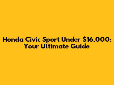 Honda Civic Sport Under $16,000: Your Ultimate Guide