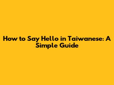 How To Say Hello In Taiwanese: A Simple Guide