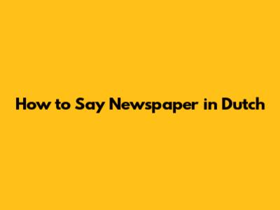 How To Say 'Newspaper' In Dutch