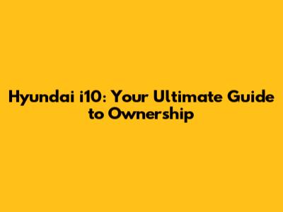 Hyundai I10: Your Ultimate Guide To Ownership