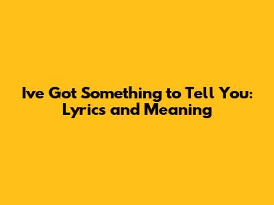 I've Got Something To Tell You: Lyrics And Meaning