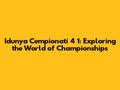 Idunya Cempionati 4 1: Exploring The World Of Championships