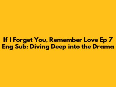 Hey everyone! Are you as hooked on If I Forget You, Remember Love as I am? This C-drama is seriously stealing hearts, and if you're anything like me, you're constantly refreshing your browser, waiting for the latest episode with those sweet, sweet English subtitles. Well, If I Forget You, Remember Love Ep 7 Eng Sub is here, and we're diving deep into all the juicy details. Get ready for a recap of all the drama, the emotional rollercoaster, and, of course, where you can watch it with those handy subtitles! This is gonna be a good one, guys.